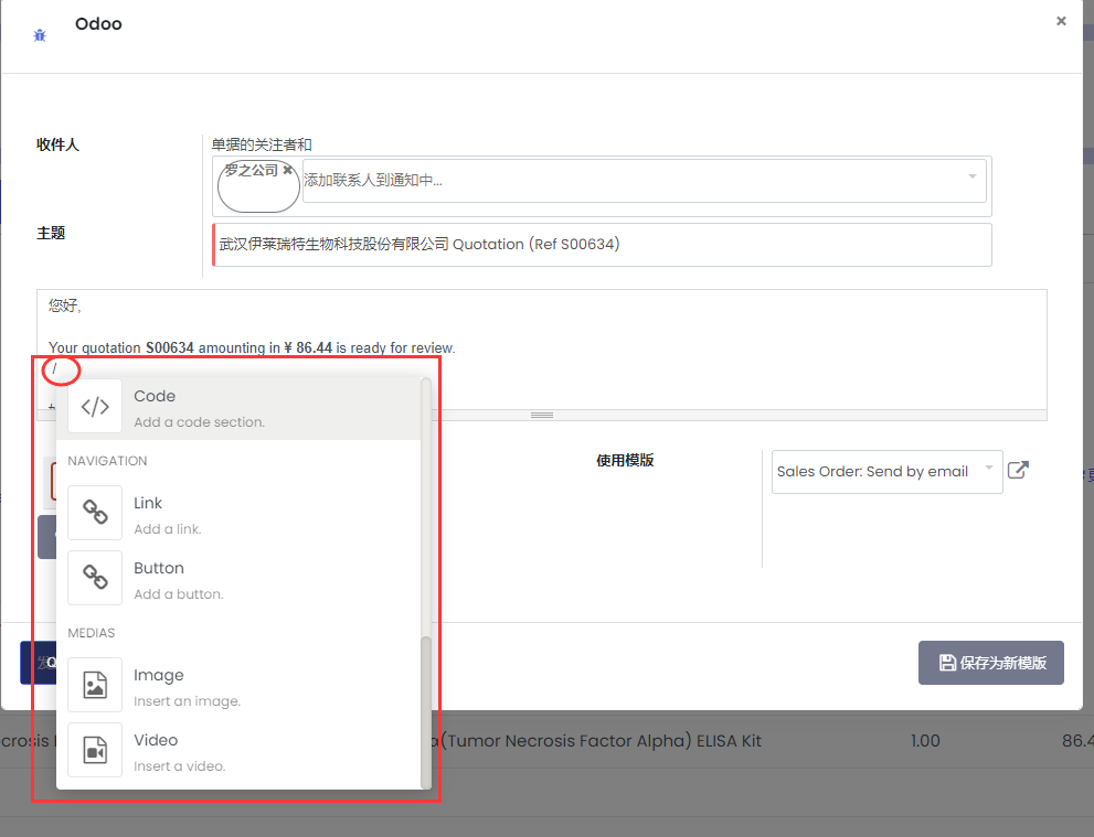 编辑 关闭 删除 标记 邮件签名不能加图片,销售有时候会加上一些最新产品图片,认证之类的到邮件签名 Admin 17 十一月 2021 0 1 201 0 希望在邮件模板编辑框里可以上传图片 评论 分享 0 贴子评论 丢弃 1 答案 Admin 18 十一月 2021 Best Answer 方法一、邮件模板中,通过输入一个斜杠“/”,可以有插入图片的入口,同时也可以插入许多其他形式的媒体内容。 方法二、可以先“复制图片”,将一张图片直接复制(Ctrl+C)后,在签名栏或邮件模板的文本编辑器(编辑框)内按Ctrl+V粘贴。 备注 Share 0 贴子评论 丢弃